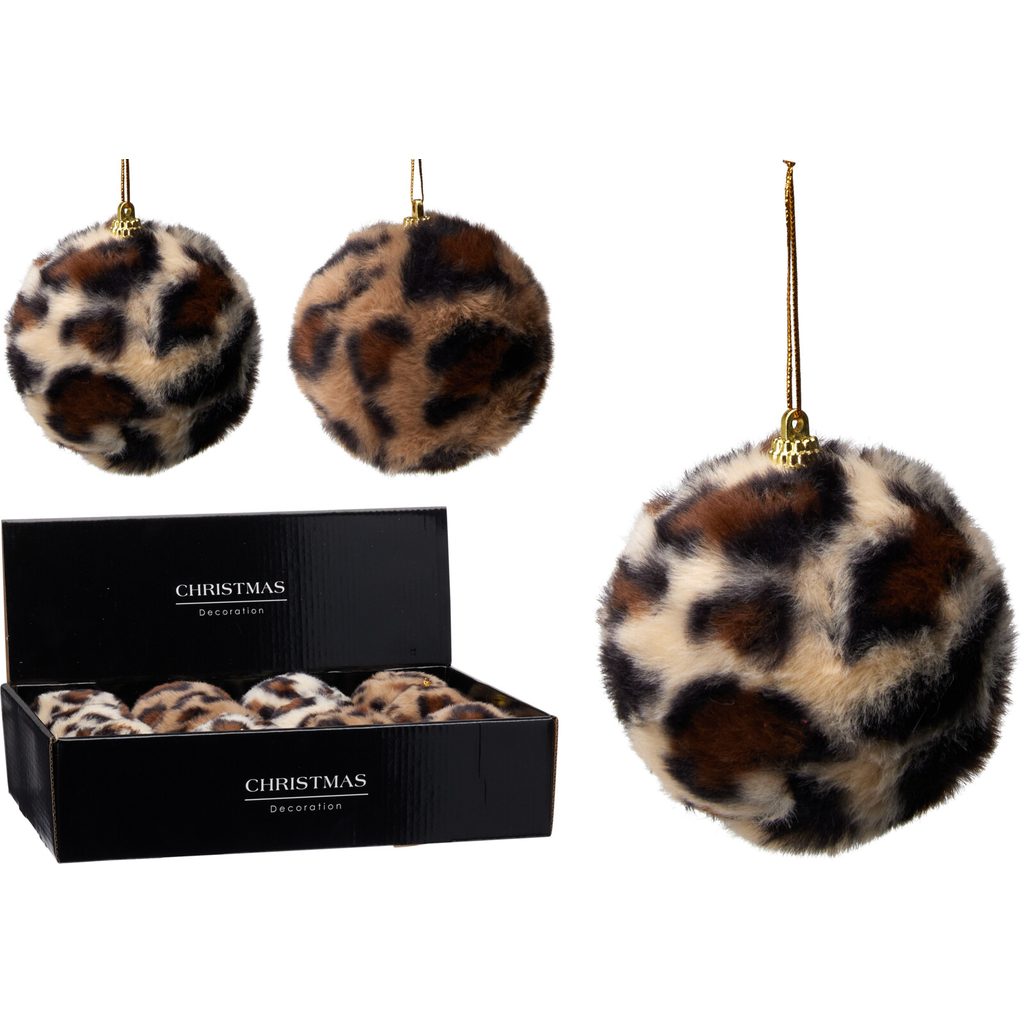 Ёлочный шар из искусственного меха с темным леопардовым принтом, 8 см
