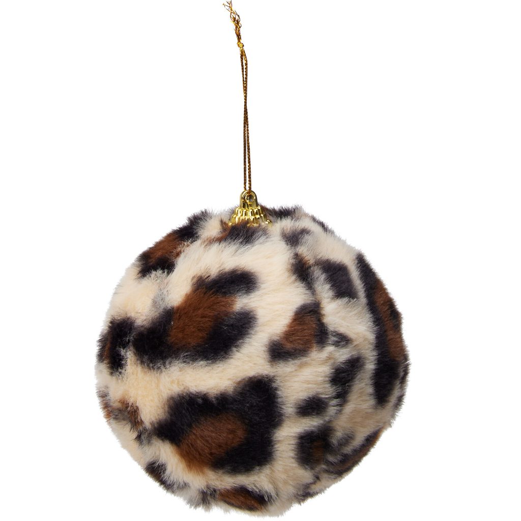 Этот ёлочный шар добавит эксклюзивности вашему новогоднему декору благодаря мягкому искусственному меху с принтом леопарда. Яркий и стильный, он станет эффектным акцентом на любой ёлке.