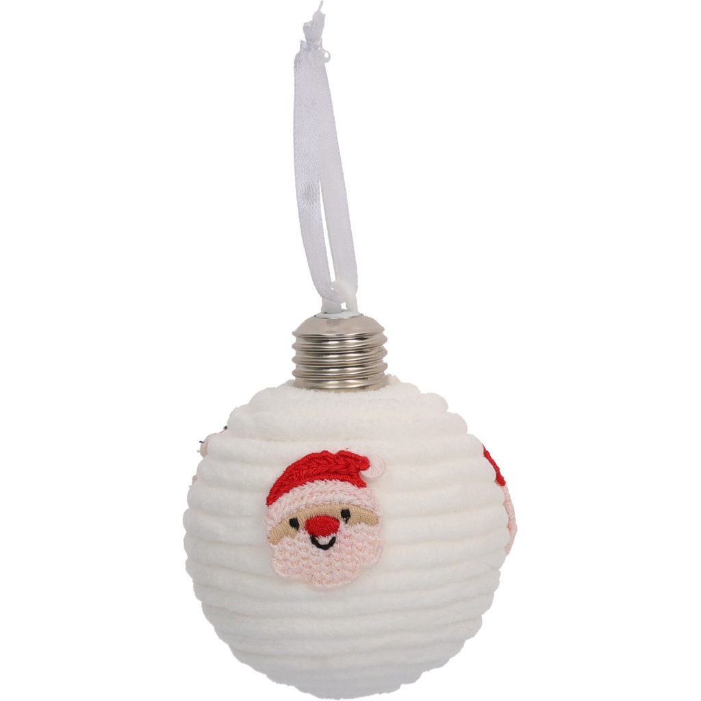 Этот очаровательный ёлочный шар станет прекрасным дополнением к вашему новогоднему декору. Шар выполнен в виде лампочки и украшен милой вышивкой Санта-Клауса, выполненной из мягкого текстиля. Встроенная тёплая белая LED-подсветка создаёт уютную атмосферу праздника.